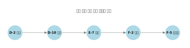 D2(D-2 ์ ํ) --> D10(D-10 ๊ตฌ์ง) D10 --> E7(E-7 ์ทจ์