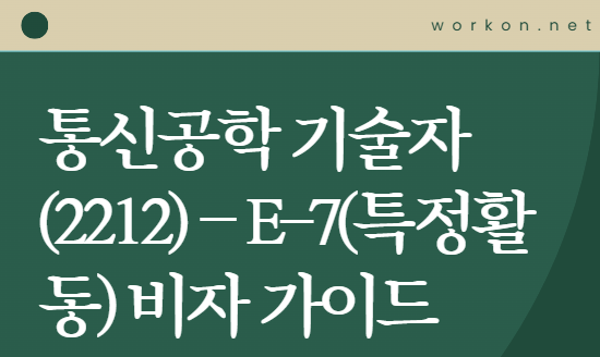 5G·6G 이동통신, 광통신망, 위성통신, 네트워크 인프라 구축 등 유무선 통신망 설계·시험·운영 전문 인력을 채용하려면 E-7(특정활동) – 통신공학 기술자(2212) 직종 요건을 정확히 이해해야 합니다.
